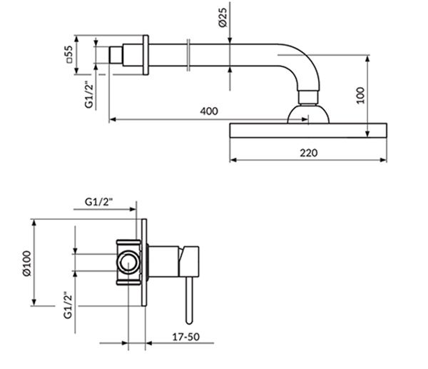 Baterija DARK za tuš kadu sa uzidnim tušem, bez izliva JD31101