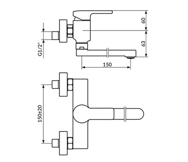 Baterija za sudoperu-lavabo izliv 150mm ROSAN B/2 JB32115