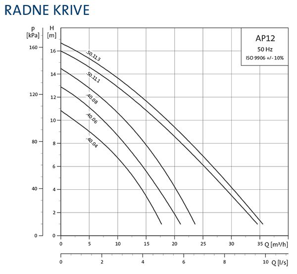Broj u oznaci tipa, npr. AP12, ukazuje na veličinu oblih čestica koje mogu proći kroz pumpu.