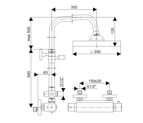 ROSAN THERMO 2 termostatska zidna baterija sa usponskim i ručnim tušom JT37251 0.00