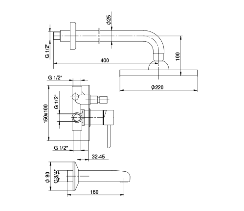 Baterija za kadu sa izlivom i uzidnim tušem ROSAN ZERRO JZ31301